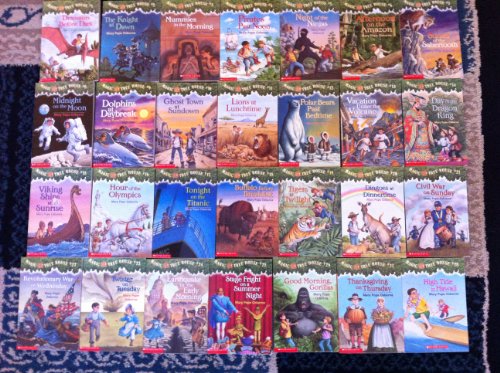 This set includes volumes 1 to 28 of the exciting chapter book series: Magic Tree House by Mary Pope Osborne Dinosaurs Before Dark The Knight at Dawn Mummies in the Morning Pirates Past Noon Night of the Ninjas Afternoon on the Amazon Sunset of the Sabertooth Midnight on the Moon Dolphins at Daybreak Ghost Town at Sundown Lions at Lunchtime Polar Bears Past Bedtime Vacation Under the Volcano Day of the Dragon King Viking Ships at Sunrise Hour of the Olypics Tonight on the Titanic Buffalo Before Breakfast Tigers at Twilight Dingoes at Dinnertime Civil War on Sunday Revolutionary War on Wednesday Twister on Tuesday Earthquake in the Early Morning Stage Fright on a Summer Night Good Morning, Gorillas Thanksgiving on Thursday High Tide in Hawaii